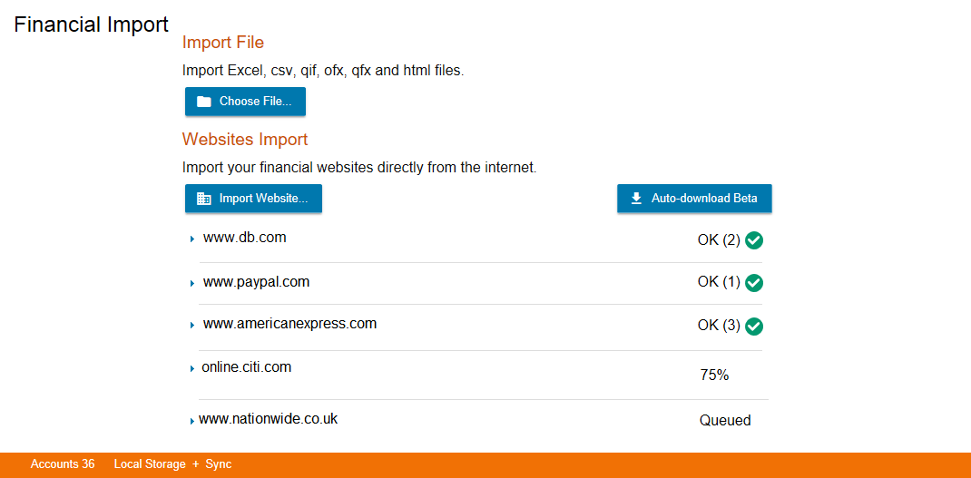 Import all your financial data directly from any website with a friendly wizard and create financial downloaders for your sites in order to automate data imports. You can also import files downloaded from your bank, credit card or other financial software and, of course, you may also enter transactions manually. Concentrating all the financial information will enable you to make the right decisions and improve economic strength.