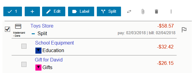 With Geltbox you can split a transaction and label each sub-transaction separately. Do you need to find out something about a specific transaction? No problem! You can add a comment and set a reminder. You can also attach documents and invoices to your transactions.