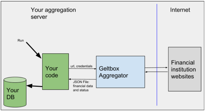 Geltbox Aggregator can be run from the command line or by starting a process using your prefered programming language.