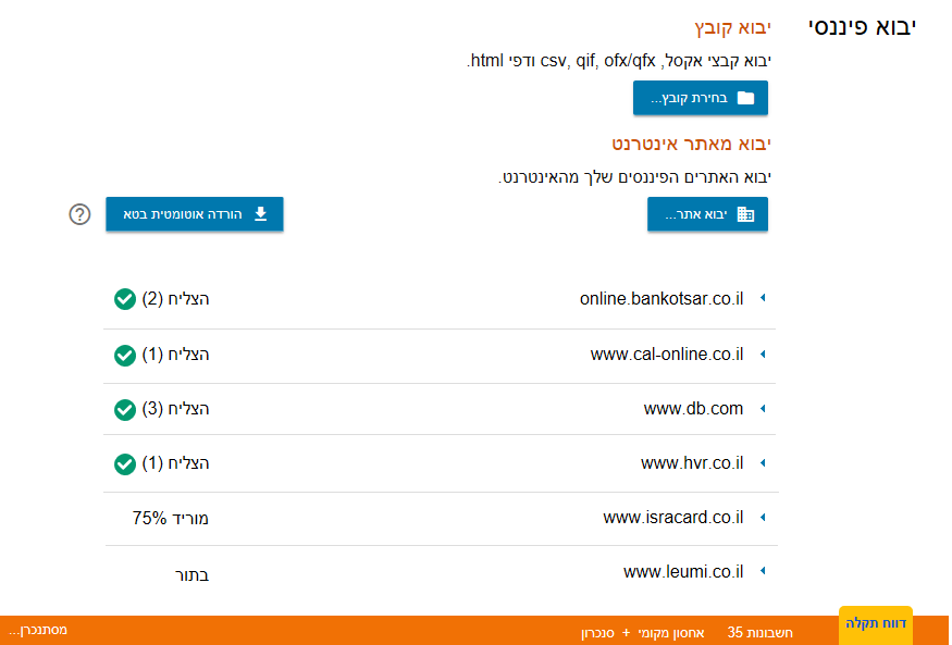 יבוא מידע מכל בנק, כרטיס אשראי ובית השקעות