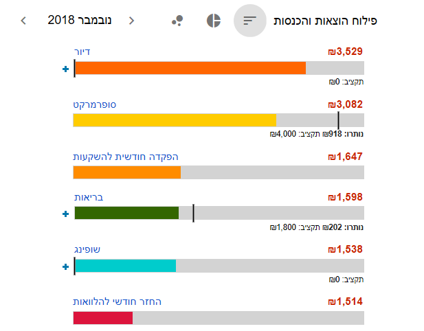 אפשר ללמוד על הרגלי ההוצאות ובקלות להגדיר תקציב לכל הקטגוריות שחשובות לך. תתקבל התראה במידה והגעת לגבול שנקבע.